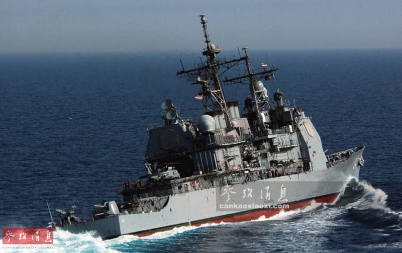 图为美海军”安提坦“号(CG-54)导弹巡洋舰进行高速转向测试。