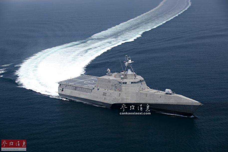 图为美海军“独立”号濒海战斗舰进行高速转向测试。