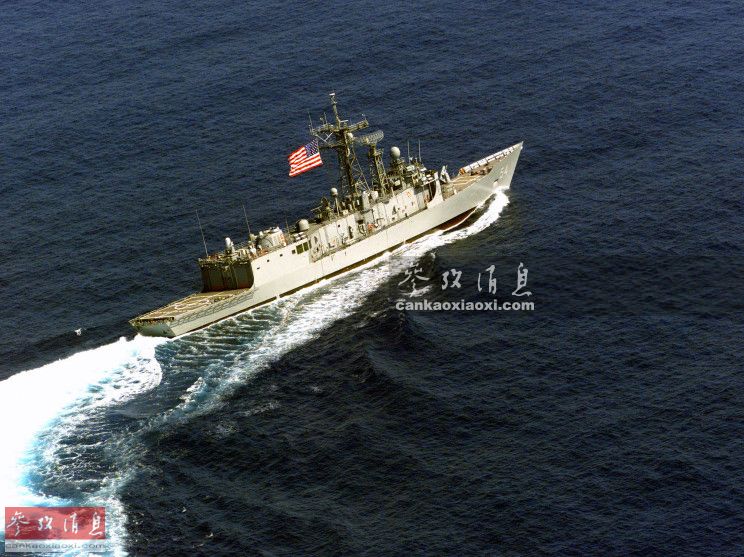1997年9月25日,美海军佩里级”福特“号导弹护卫舰进行高速转向测试。