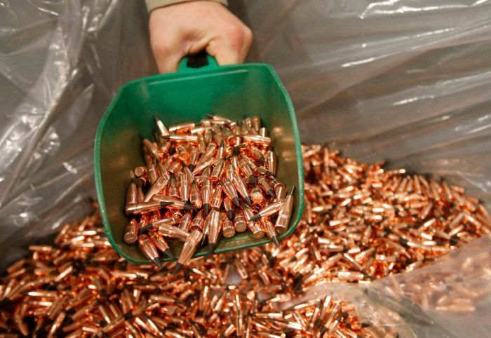 子弹的制造工程非常复杂,一般要经过以下工序:弹心压入→尾锥部预压→底部卷边→尾锥部成形→过径→辊沟→尺寸校量→称量→外观检选。