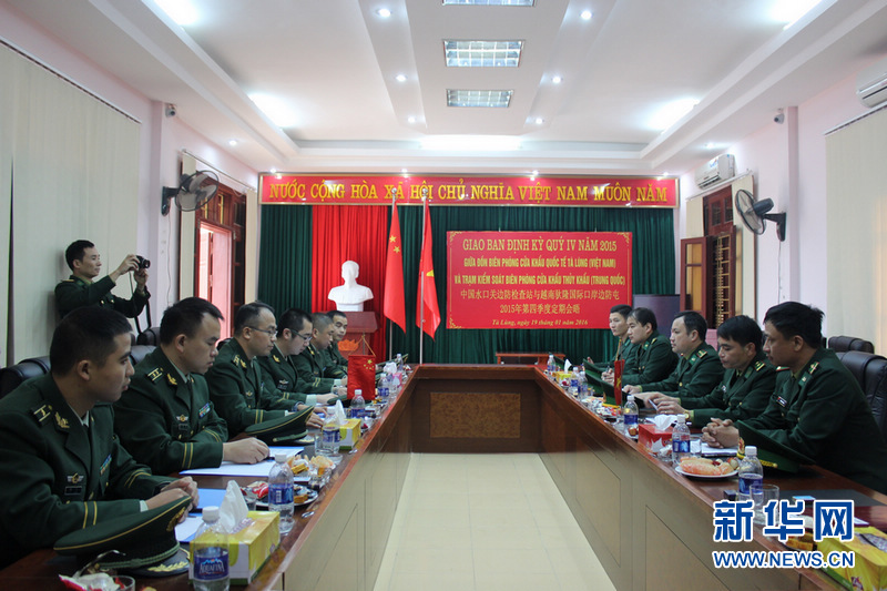 19日,广西边防总队水口关边检站代表团一行12人应邀出境与越南驮隆国际口岸边防屯举行2015年第四季度定期会谈暨政治工作交流活动。