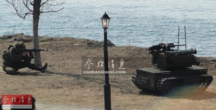 据俄罗斯《独立报》网站1月20日报道称,2014年12月,俄军“洋槐”自行火炮、6台“平台”-M地面作战机器人和4台“阿尔戈”机器人在“仙女座”-D自动化指挥系统的指挥下在叙利亚的拉塔基亚某山区顺利完成作战任务。据说,叙利亚军队在俄专家和机器人的帮助下向754.5高地发起了攻击。 图为俄军“平台”-M无人战车与步兵协同作战演练资料图。