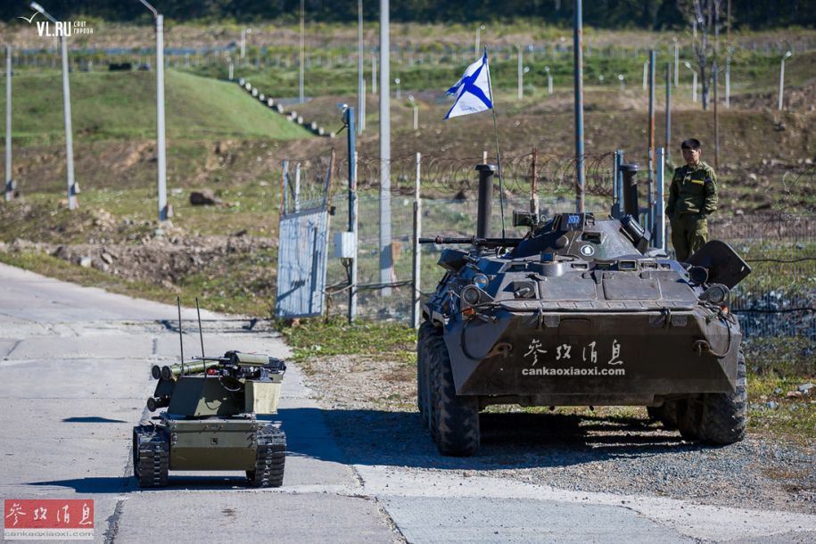 图为“平台-M”与BTR轮式装甲车的尺寸对比,可见“平台-M”的尺寸之小。