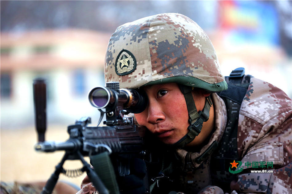 组图:狙击步枪手寒冬练射击 头上枪上垒弹壳