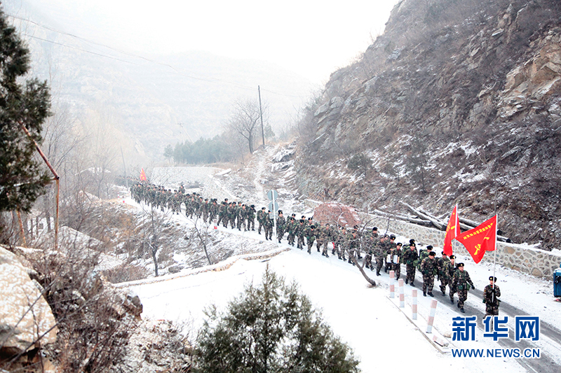 参训官兵雪中徒步拉练