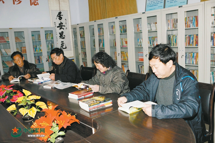 “好村官”尚银州(右一),与村民一起在农家书屋“充电”。