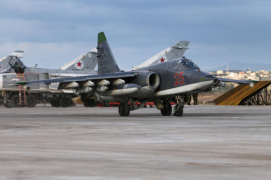 图为苏-25攻击机和苏-24轰炸机。苏-25共生产了600多架,北约给该机的焯号为“蛙足”。1982 年苏军进入阿富汗作战时,该机被用于执行对地攻击任务,该机在阿富汗的作战中损失了23架。