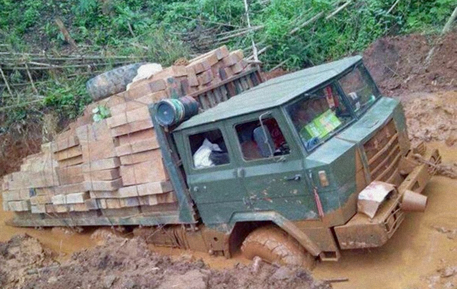 中国退役军车在缅甸丛林大显神武 满载穿越泥潭