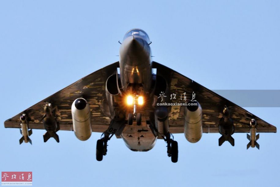 这是另一张LCA满外挂测试图。翼展过小导致的挂架间距过小问题更明显,在挂载2个副油箱的情况下,只能再挂载2枚激光制导炸弹和2枚空空导弹。