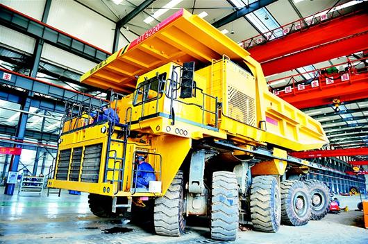 由航天重工研制的全球最大载重量HT3363两轴电动轮矿用自卸车。刘曙松 摄
