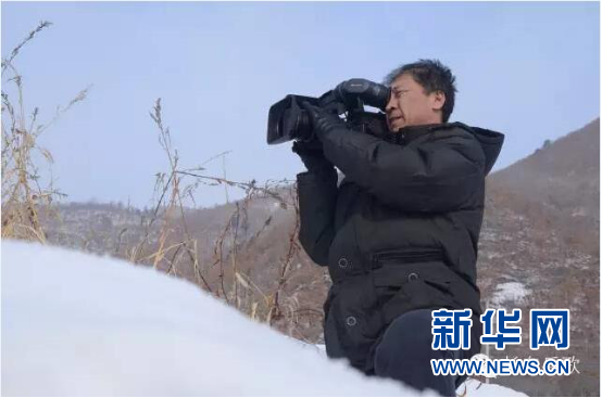 记者在长白山林海雪原中忘我工作,全然不顾环境的寒冷。