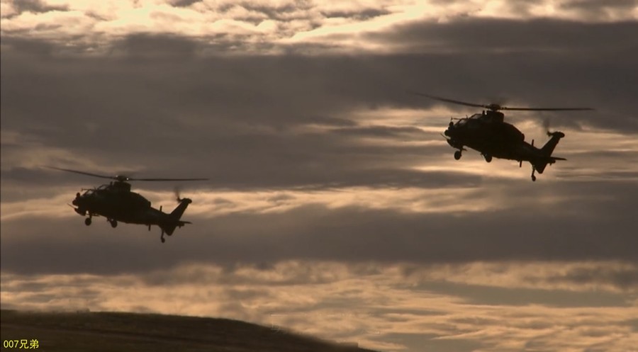 近日,电视新闻节目播出了直-10武装直升机进行编队训练的画面,在夕阳下直-10双机编队的剪影非常美。