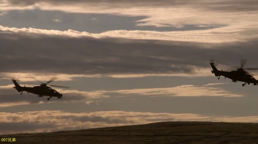 近日,电视新闻节目播出了直-10武装直升机进行编队训练的画面,在夕阳下直-10双机编队的剪影非常美。