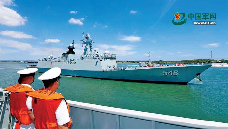 1月2日,中国海军益阳舰驶入澳大利亚布里斯班码头,准备并靠济南舰。