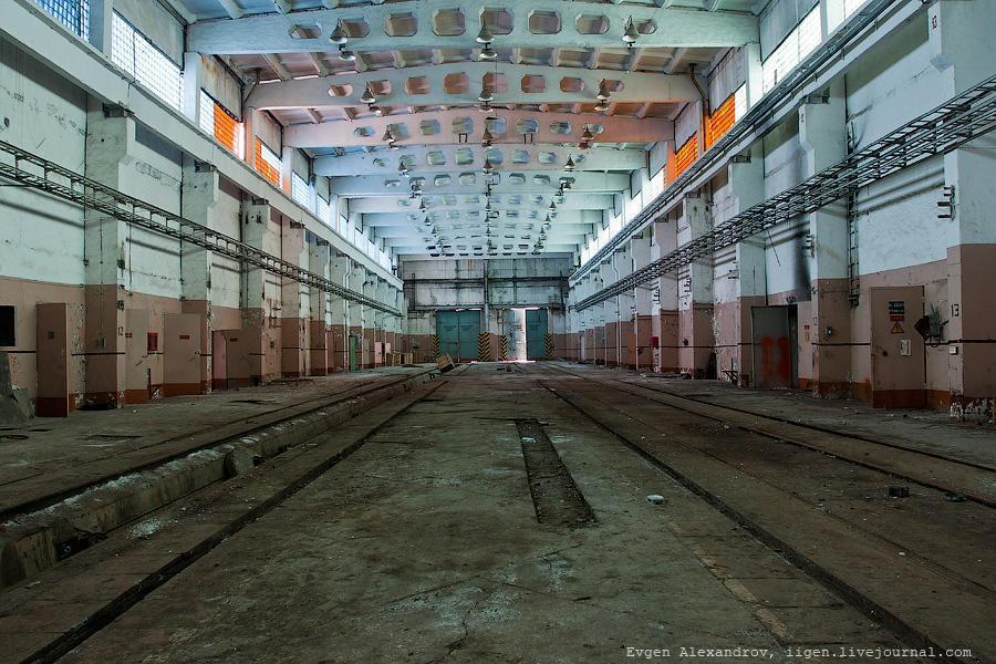 这座矮楼建筑内部可见地面上的铁路轨道。
