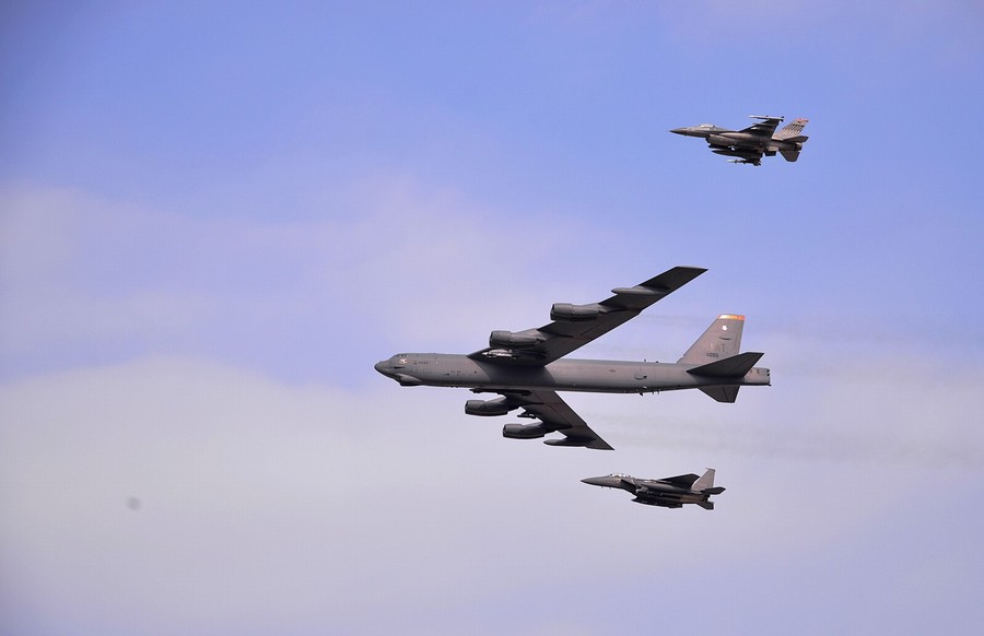 当地时间1月10日,美国派一架B-52型远程战略轰炸机于10日上午飞越韩国领空,驻韩美军在一份声明中说,这次飞行任务是“对朝鲜挑衅行为的回应”。当地时间1月10日,美国派一架B-52型远程战略轰炸机于10日上午飞越韩国领空,驻韩美军在一份声明中说,这次飞行任务是“对朝鲜挑衅行为的回应”。