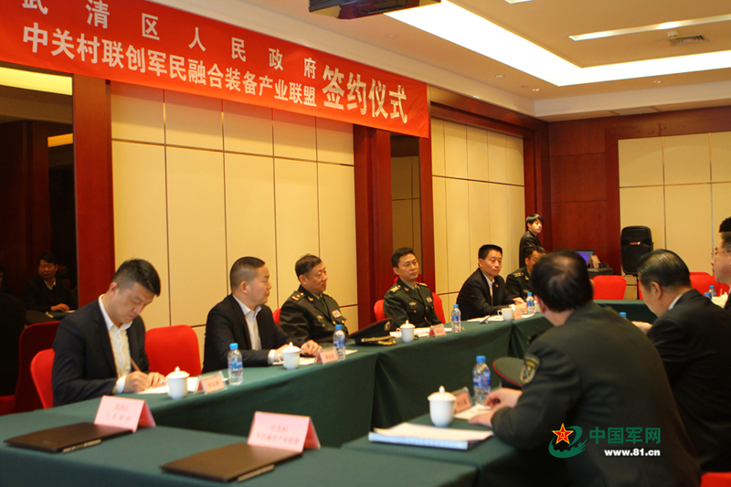 1月26日下午,天津武清区与中关村军民融合产业联盟合作签约仪式在天津举行,来自部队、武清区政府负责同志出席了签约仪式。签约仪式上,中关村军民融合产业联盟代表介绍了项目基本情况,部队、武清区政府负责同志发表讲话。