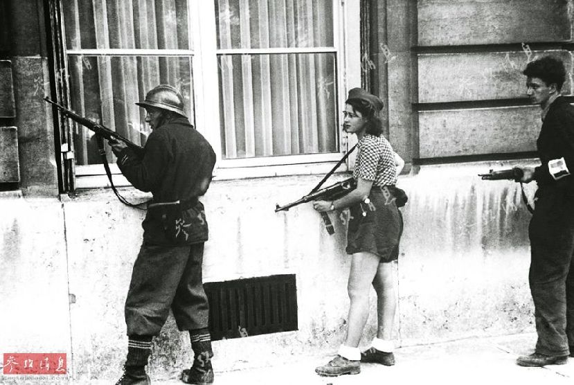 法国抵抗运动是在第二次世界大战期间为抵抗纳粹德国对法国的占领和维希政权的统治而组织起来的抵抗运动。图为1944年,中间的姑娘是法国抵抗组织的18岁女战士。