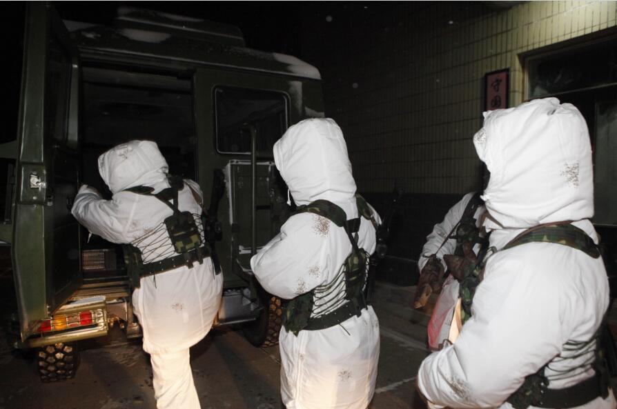 2016年1月19日,黑龙江省黑河市,女兵们穿着厚厚的如“北极熊”一样、达30多斤重的服装,正登车出发。