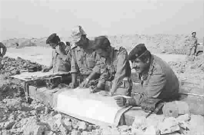 1980年10月,伊拉克军队指挥官在两伊战争前线勘察地形。