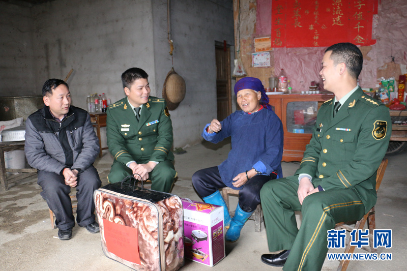 为了让辖区困难群众度过一个温馨愉快的春节,近日,广西崇左边防支队隘口边防派出所民警走进辖区困难群众家中,开展“迎新春·送温暖”关爱活动,为困难群众送上冬日的“温暖”。(胡杰)