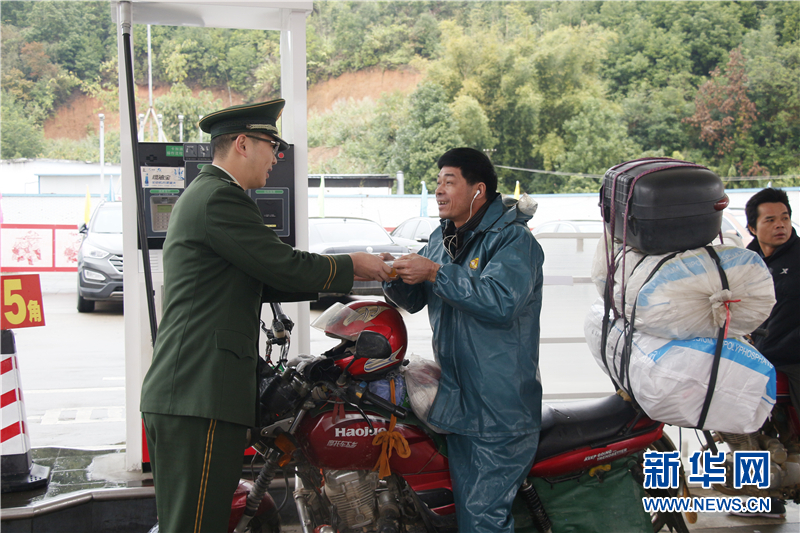 1月29日,广西边防总队梧州边检站组织边检服务小分队官兵去到梧州春运摩托车服务站,开展“情暖驿站 边检与你同在”关爱春节返乡务工人员公益活动,为务工人员返乡途中送上“温暖”。