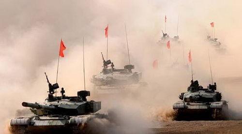 现在的各大军区部队已进行了高度合成。图为正在开进中的北京军区99式主战坦克群。