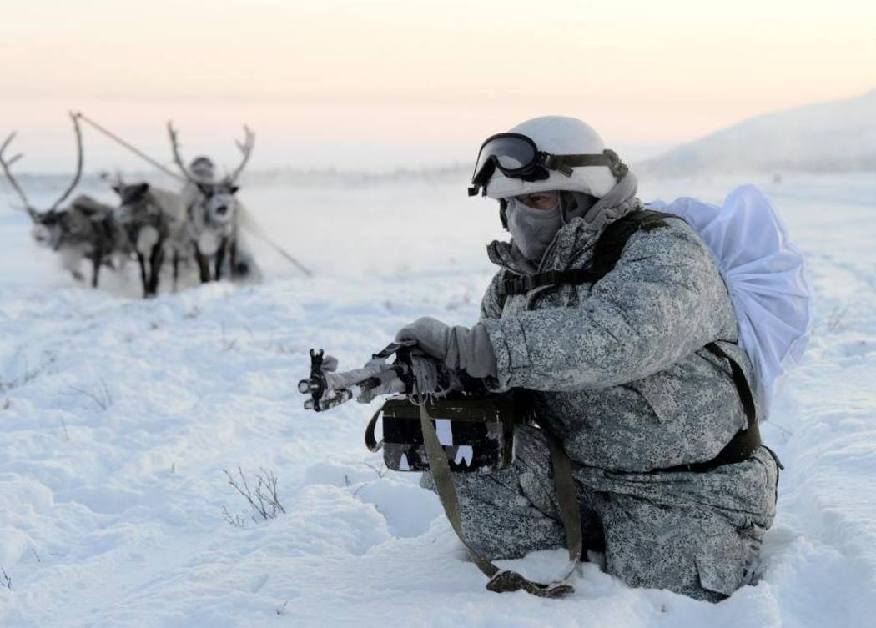 俄军在北极苦练严寒作战 搭乘鹿拉雪橇机动