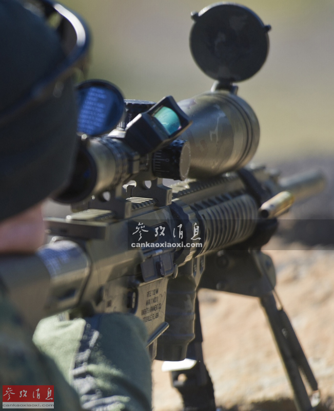 美军狙击手使用M110狙击步枪打靶抛壳瞬间。