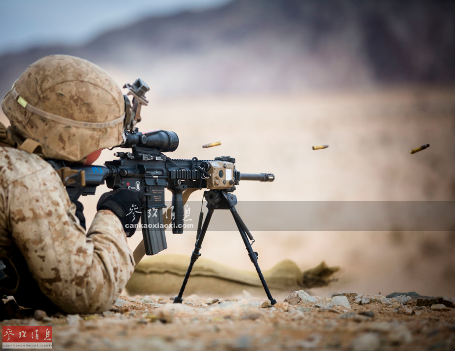 美军使用HK-416卡宾枪打靶,抛壳瞬间。