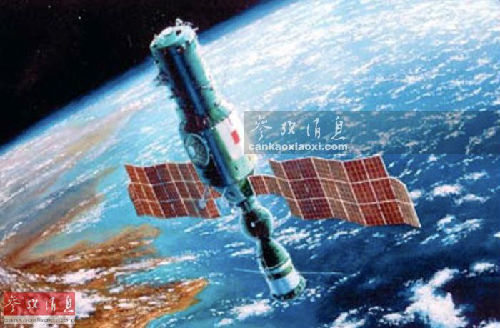 图为艺术家笔下的“钻石”(礼炮2号)军用空间站绘图。