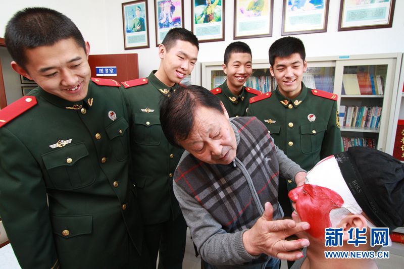 京剧团老师为官兵画京剧脸谱