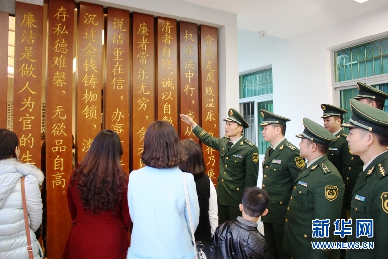 官兵家属参观警营廉政文化墙