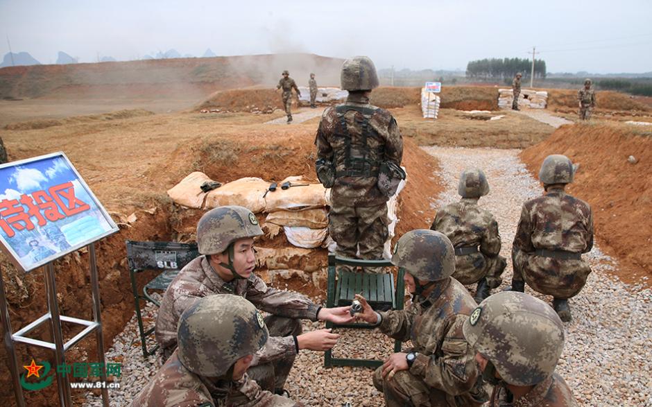 快要实投了,列兵刘宝权(右二)在待投区接受骨干的最后一次“安检”。