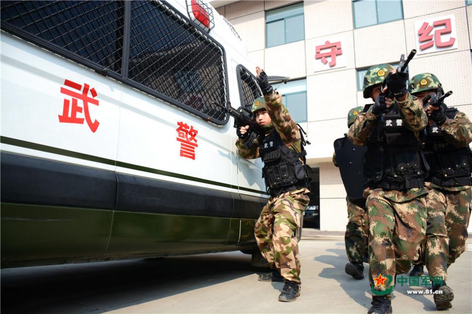 2016年2月3日,武警安徽总队滁州支队组织综合演练,这是特战队员快速出击。(刘仕琪 摄影报道 图片来源:中国军网)