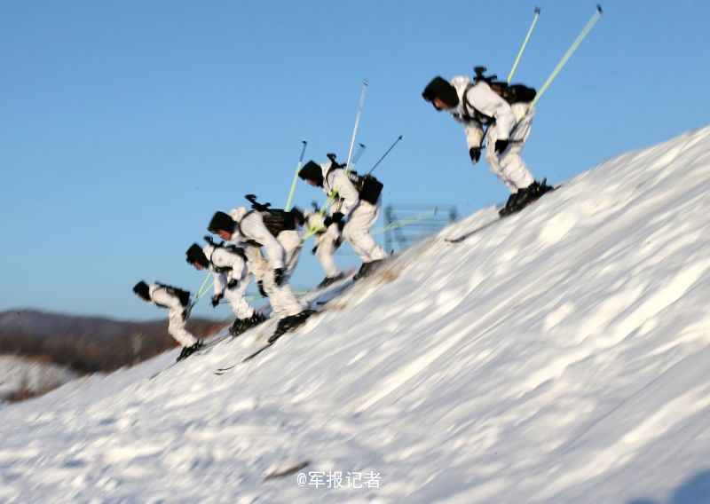 驻东北解放军展示滑雪射击技能