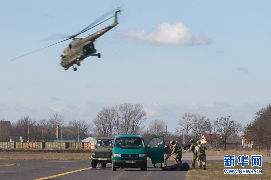 2月4日,在匈牙利中部索尔诺克,匈牙利国防军第2特种军团的成员参加演习。