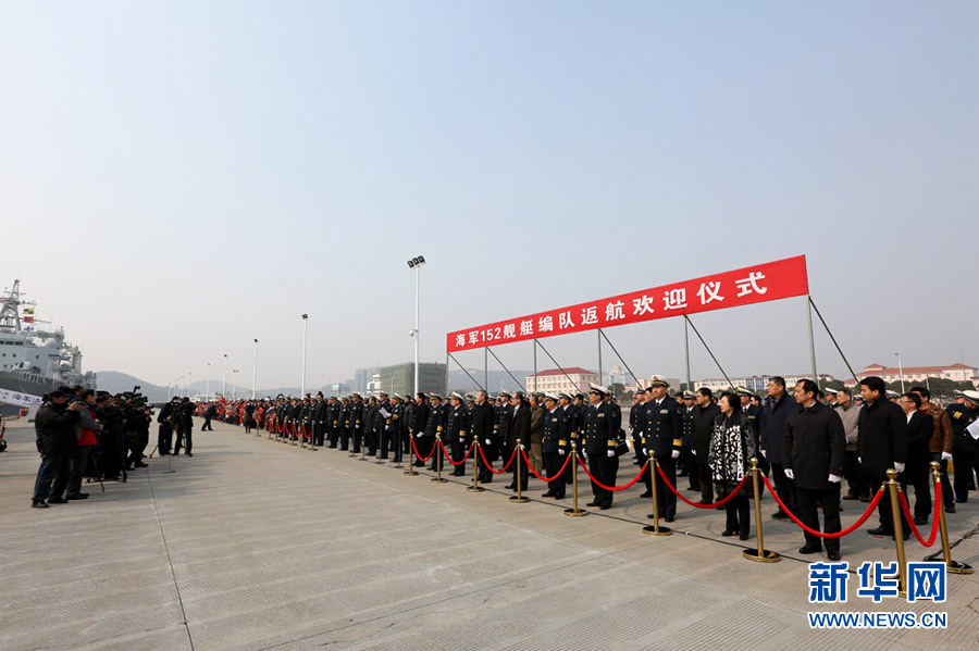 2月5日,海军152舰艇编队返航欢迎仪式在浙江舟山某军港举行。