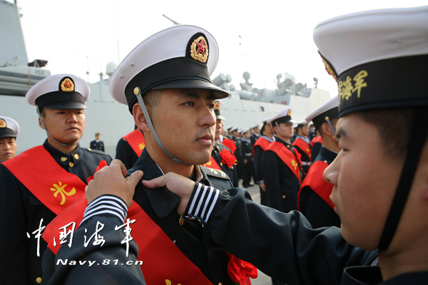 相比老兵们的难舍难分,94年的北京姑娘关雪少了一份沉重,多了一份感悟。作为北京农学院会展筹划专业的学生,因为向往威武的战舰,毅然参军入伍。两年的海军生涯,关雪走出国门看世界,用她的话说,“对自己的定位更清晰了,对国家的认同度也更高了。”