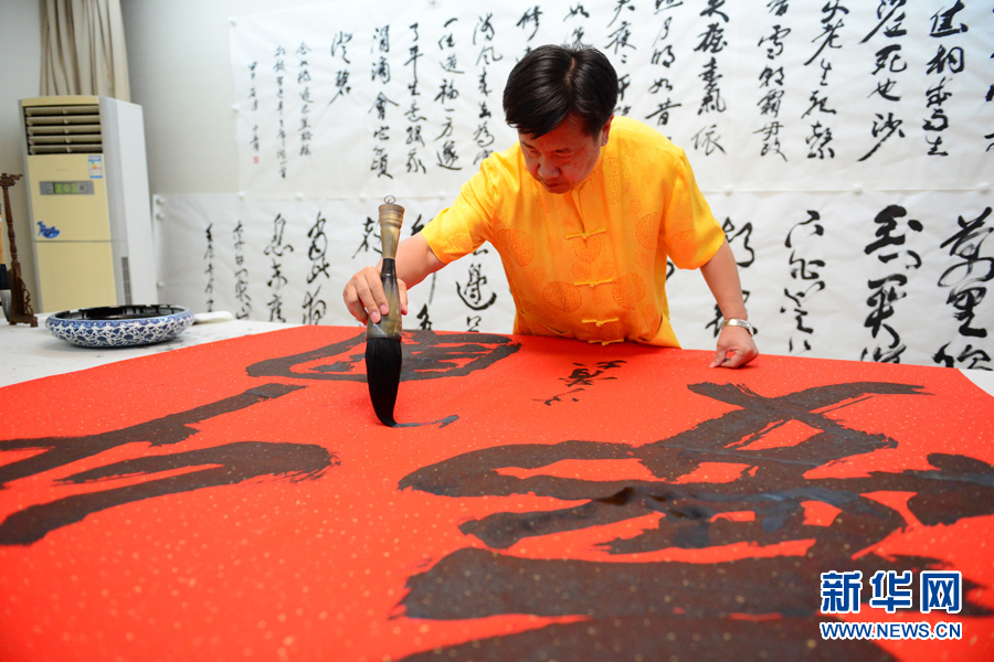 李少青现场创作书法作品《中国梦》。(资料图片)