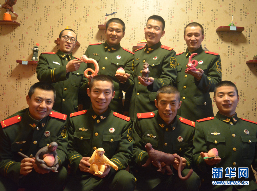 武警兴安盟森林支队官兵捏“金猴”庆新春