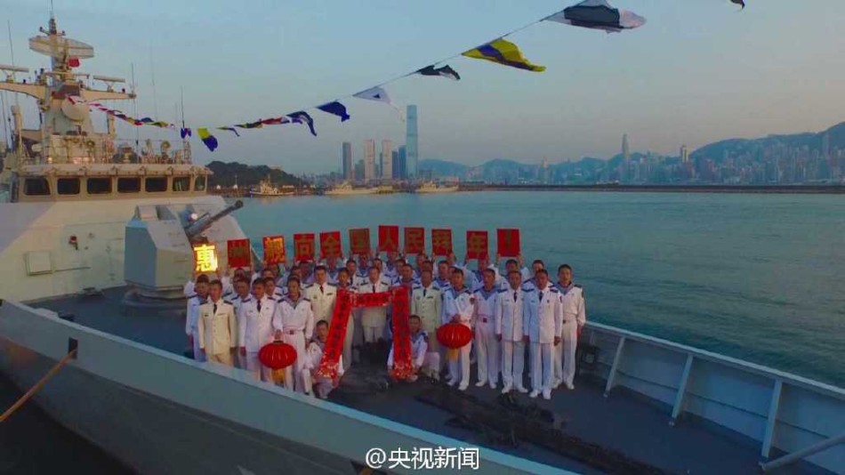 香港维多利亚港,驻香港部队惠州舰官兵在舰上挂满旗,在甲板上摆出“猴”字造型,用水兵特有的方式向全国人民和全军官兵拜年!这创意新年祝福,你喜欢吗?