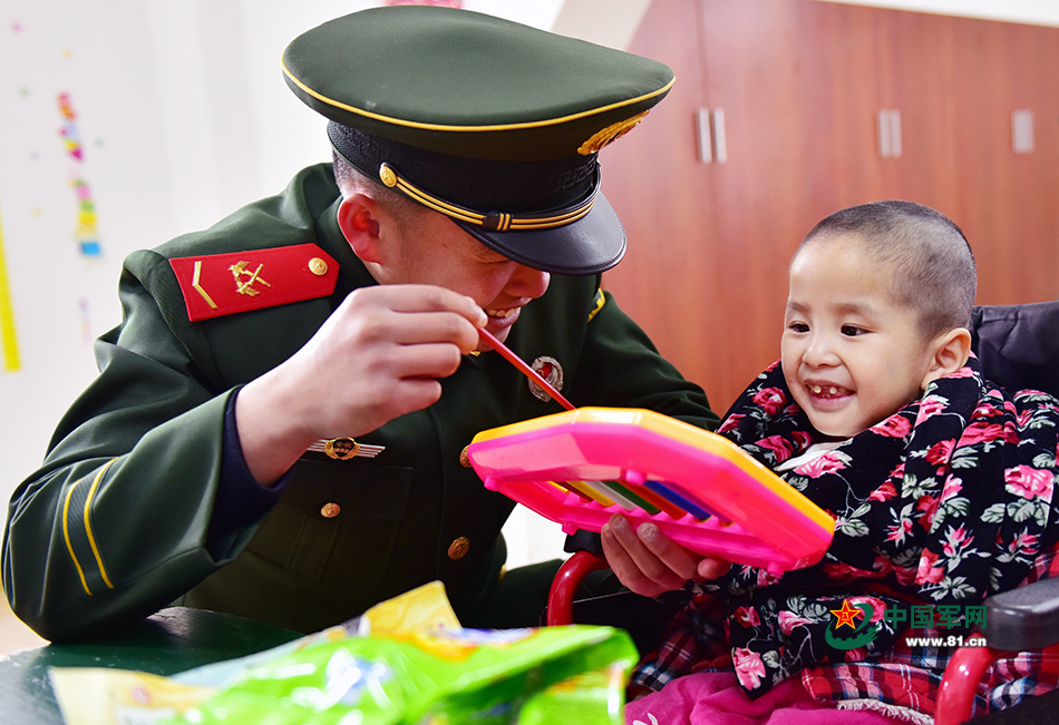 他们时而又是福利院孩子们的“知心大哥”,大手拉小手,陪玩又陪乐。(徐伟 摄)