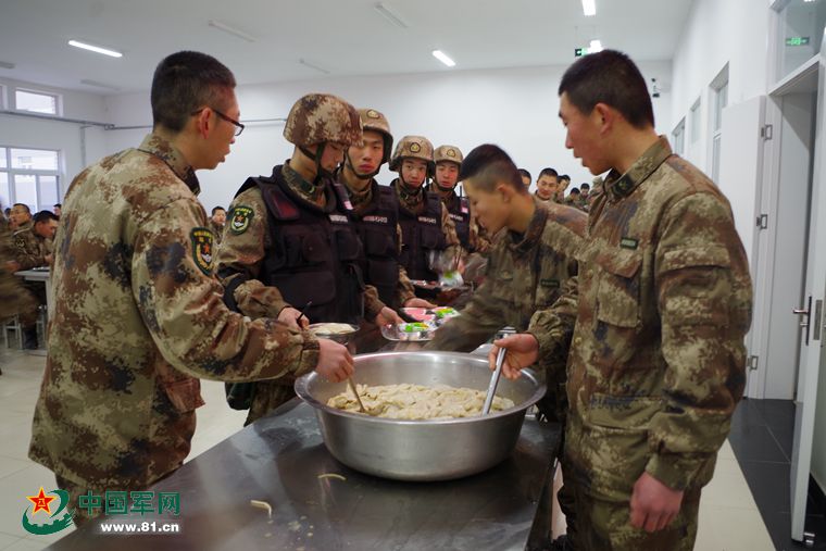 一大盆热气腾腾的饺子挑逗着人类的食欲,煮熟的饺子,好像听了话,乖乖地滚进战士的碗里。迫不及待,夹一个丢进嘴里,有点烫,味道竟和长相一样!