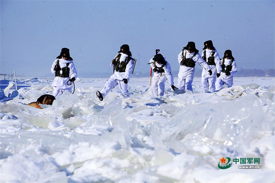 2月6日,“黑河好八连”战士冒着零下30℃的严寒气温在中俄边境线上巡逻。