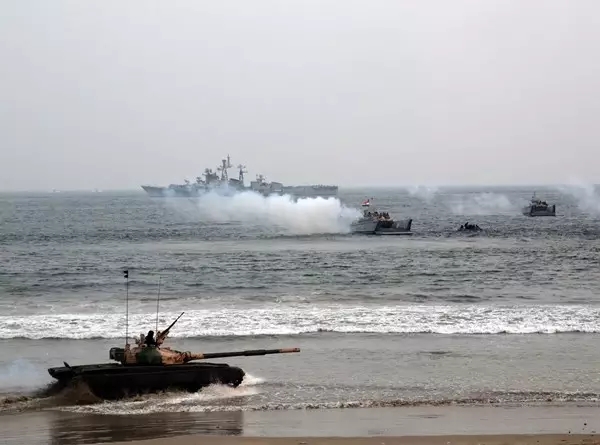 ▲印军组织作战观摩演示,图为抢滩登陆。
