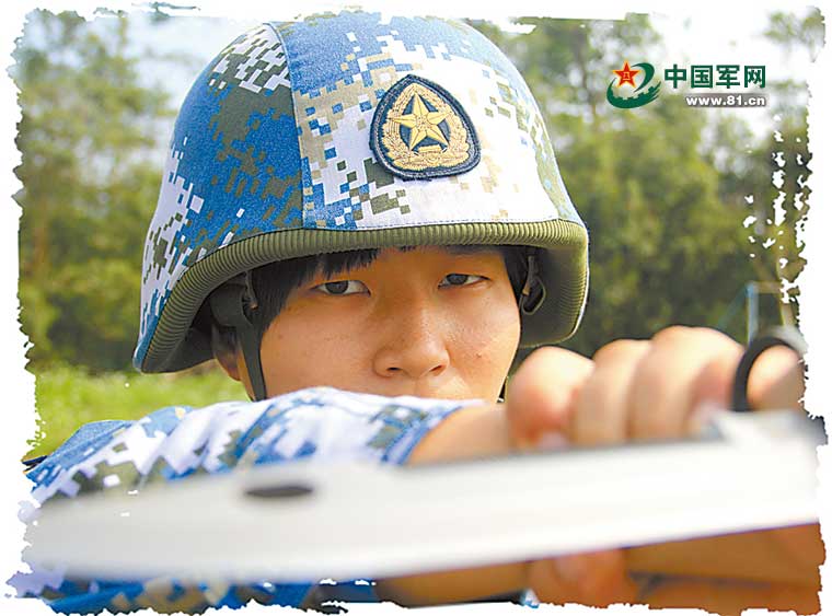 何俊杰:海军陆战队某旅两栖侦察女兵队战士,下士军衔,荣立三等功2次。高 毅摄