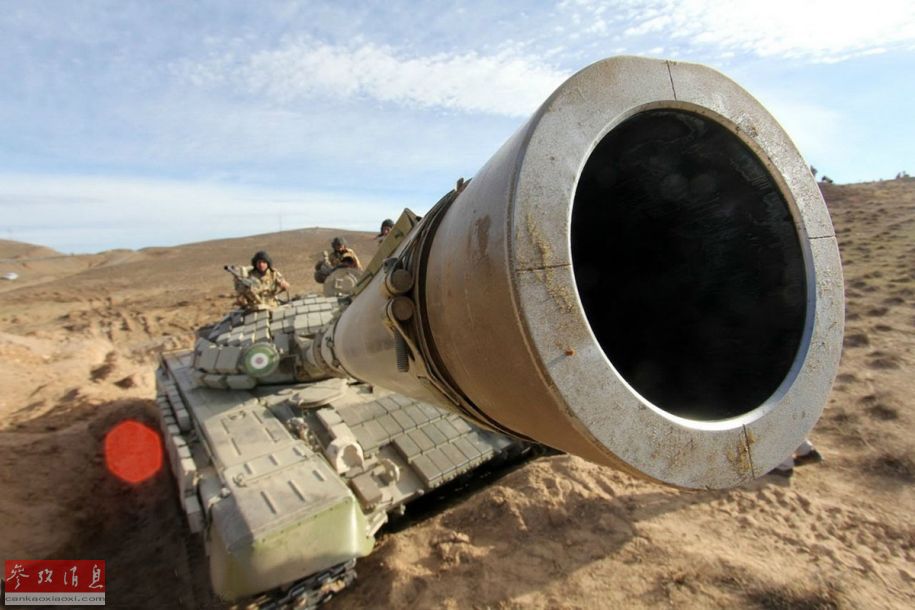 伊朗陆军T-72S1坦克炮口特写。