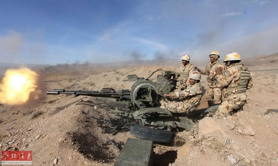 伊朗陆军士兵使用ZSU-23双联高炮对地射击。