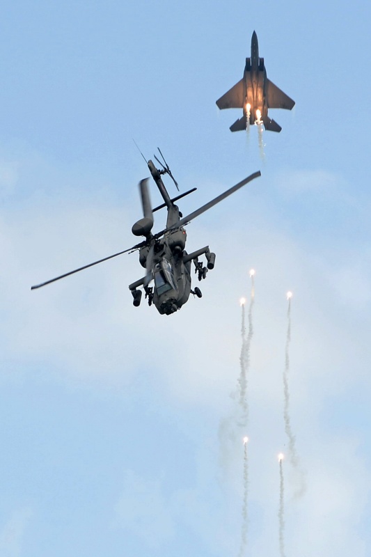 惊险!新加坡航展F-15战机和阿帕奇对飞